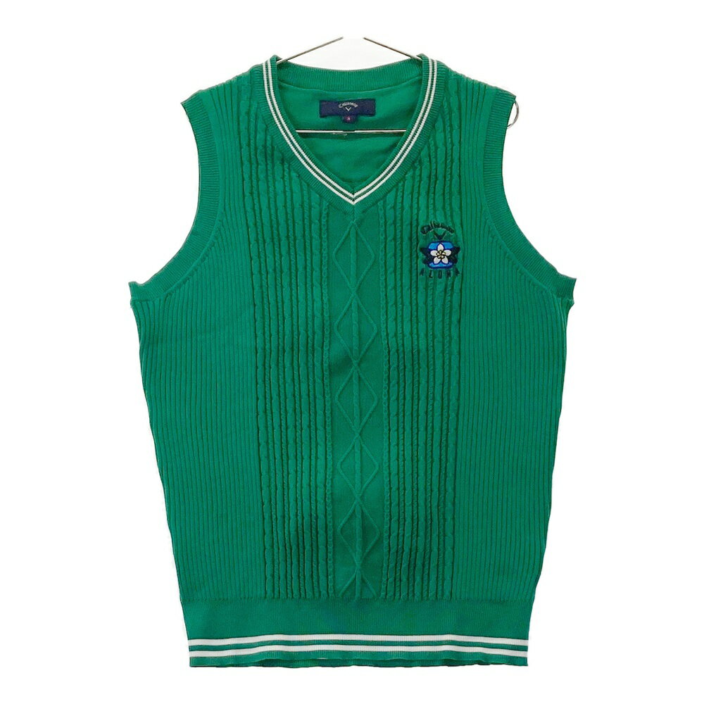 CALLAWAY キャロウェイ Vネック ニットベスト 刺繍 グリーン系 S 【中古】ゴルフウェア レディース