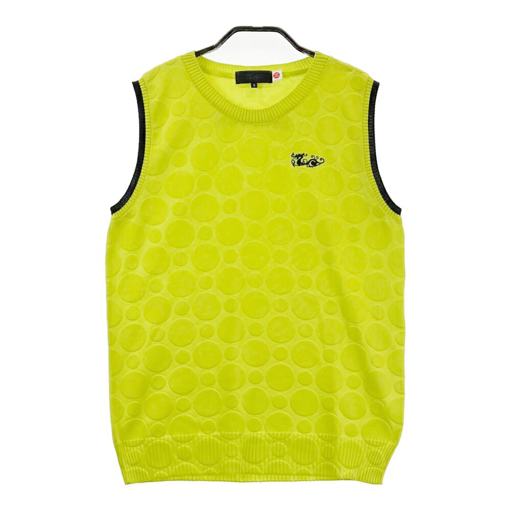 【美品】ブラックアンドホワイト ニットベスト イエロー×黒 前ドット Vネック レディース M ゴルフウェア Black&White