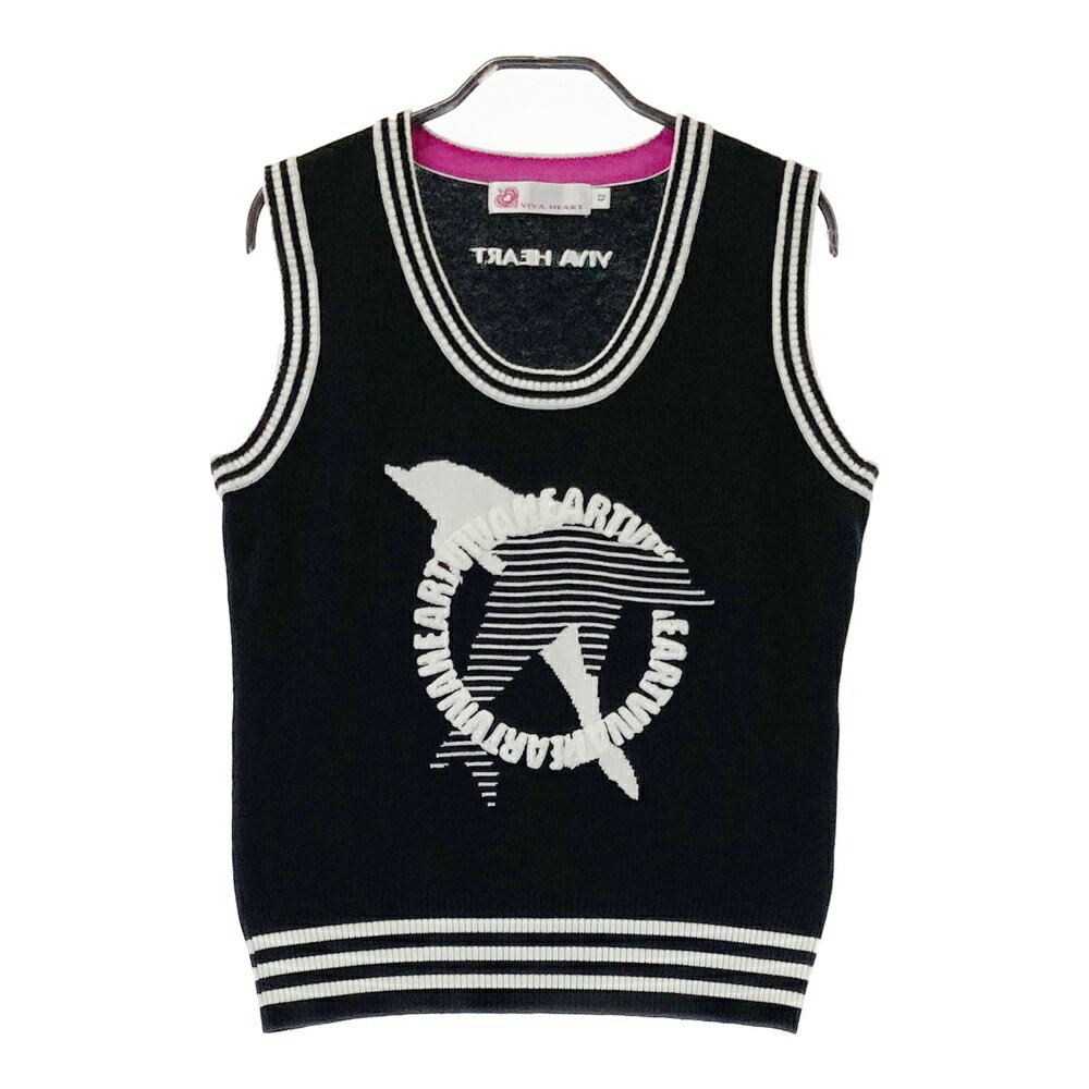 VIVA HEART ビバハート ニットベスト ブラック系 42 【中古】ゴルフウェア レディース