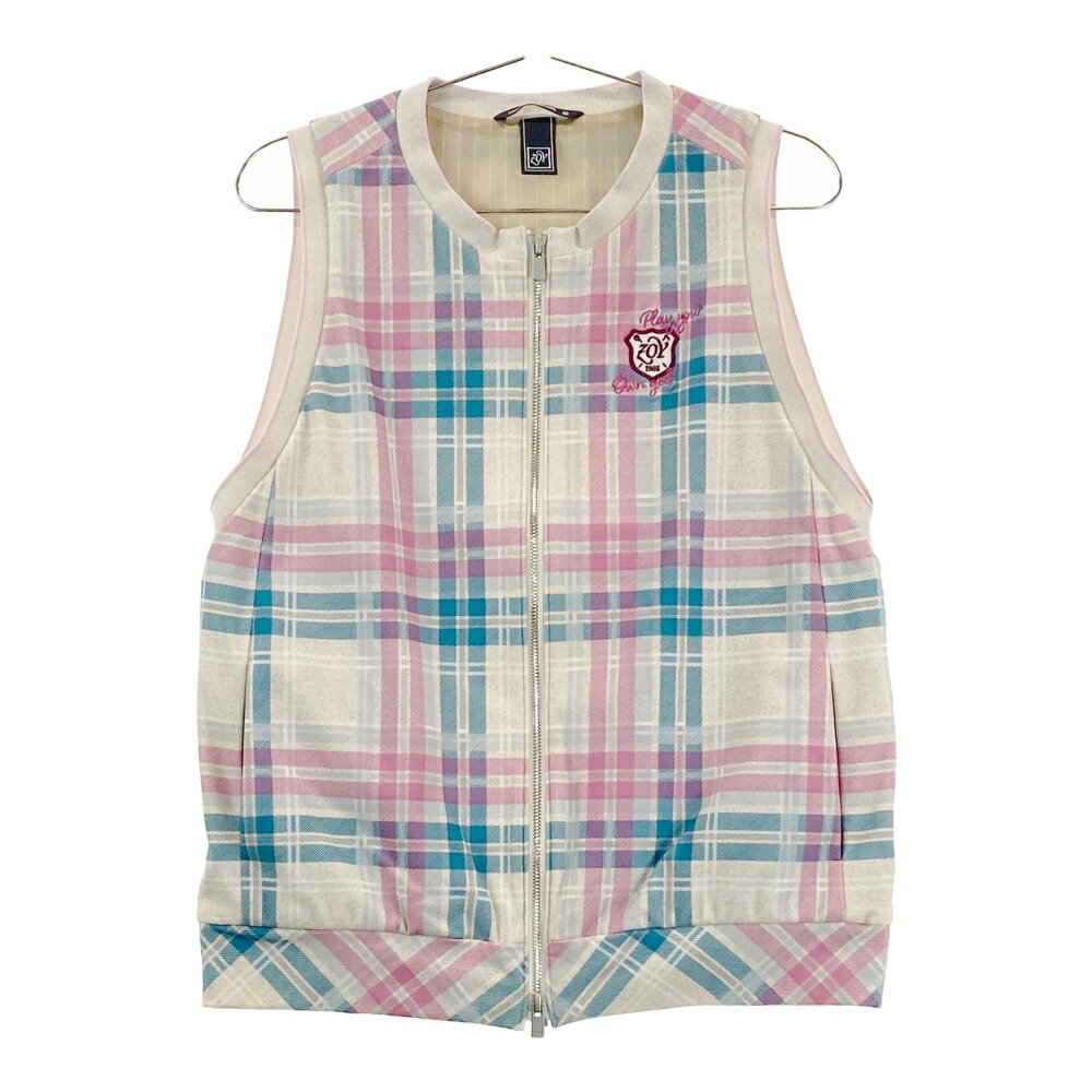 ZOY ゾーイ 蓄熱ジップベスト チェック柄 ベージュ系 40 【中古】ゴルフウェア レディース