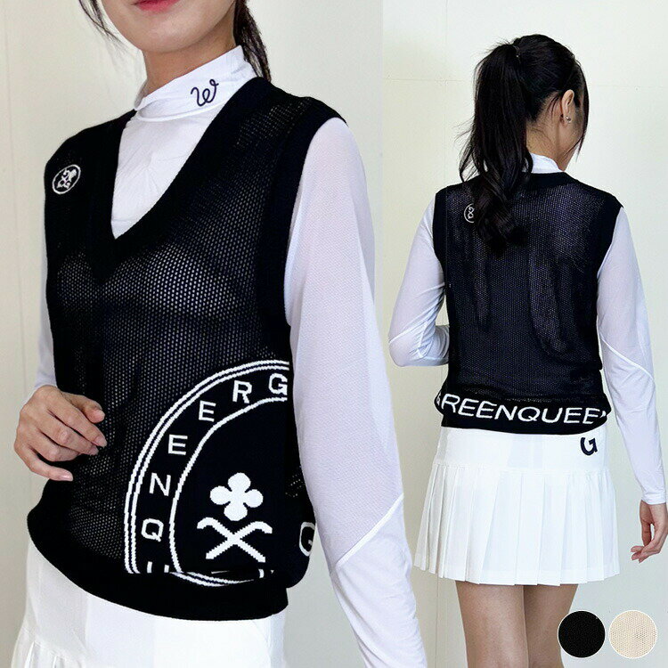 【美品】ジュンアンドロペ ニットベスト 白×ネイビー ハーフジップ 後ろビッグロゴ レディース L ゴルフウェア JUN&ROPE