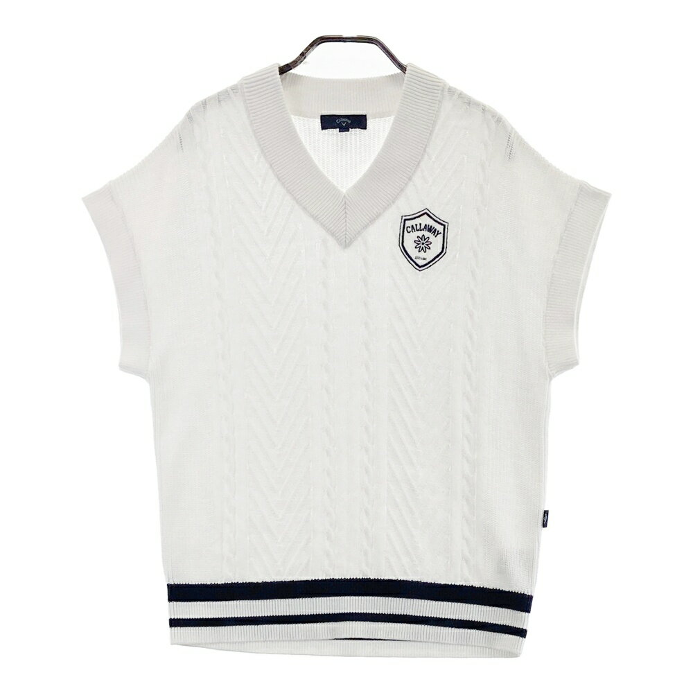 CALLAWAY キャロウェイ 2023年モデル Vネック ニットベスト ケーブル編み ホワイト系 M 【中古】ゴルフウェア レディース