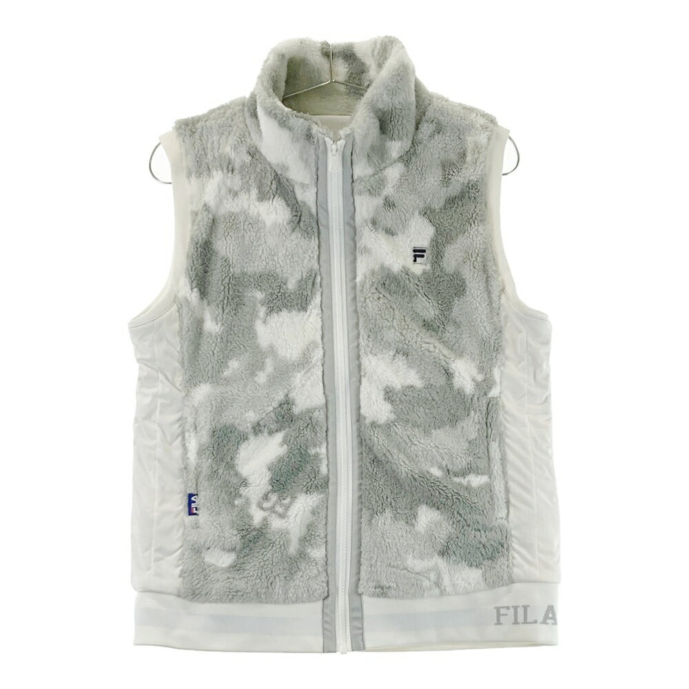 FILA GOLF フィラゴルフ ボア ジップベスト 切替 カモフラ 総柄 グレー系 L 【中古】ゴルフウェア レディース