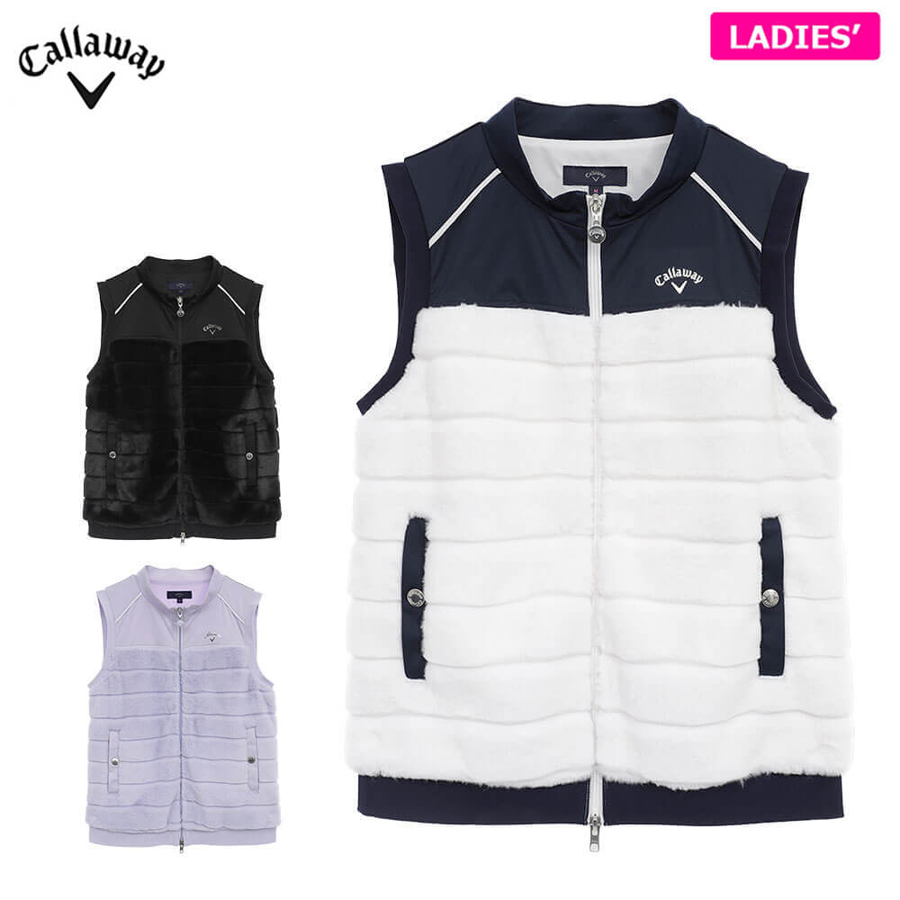 キャロウェイ レディース ゴルフウェア ベスト 秋 冬 Vネックニットカーディガンベスト (C23219201) Callaway