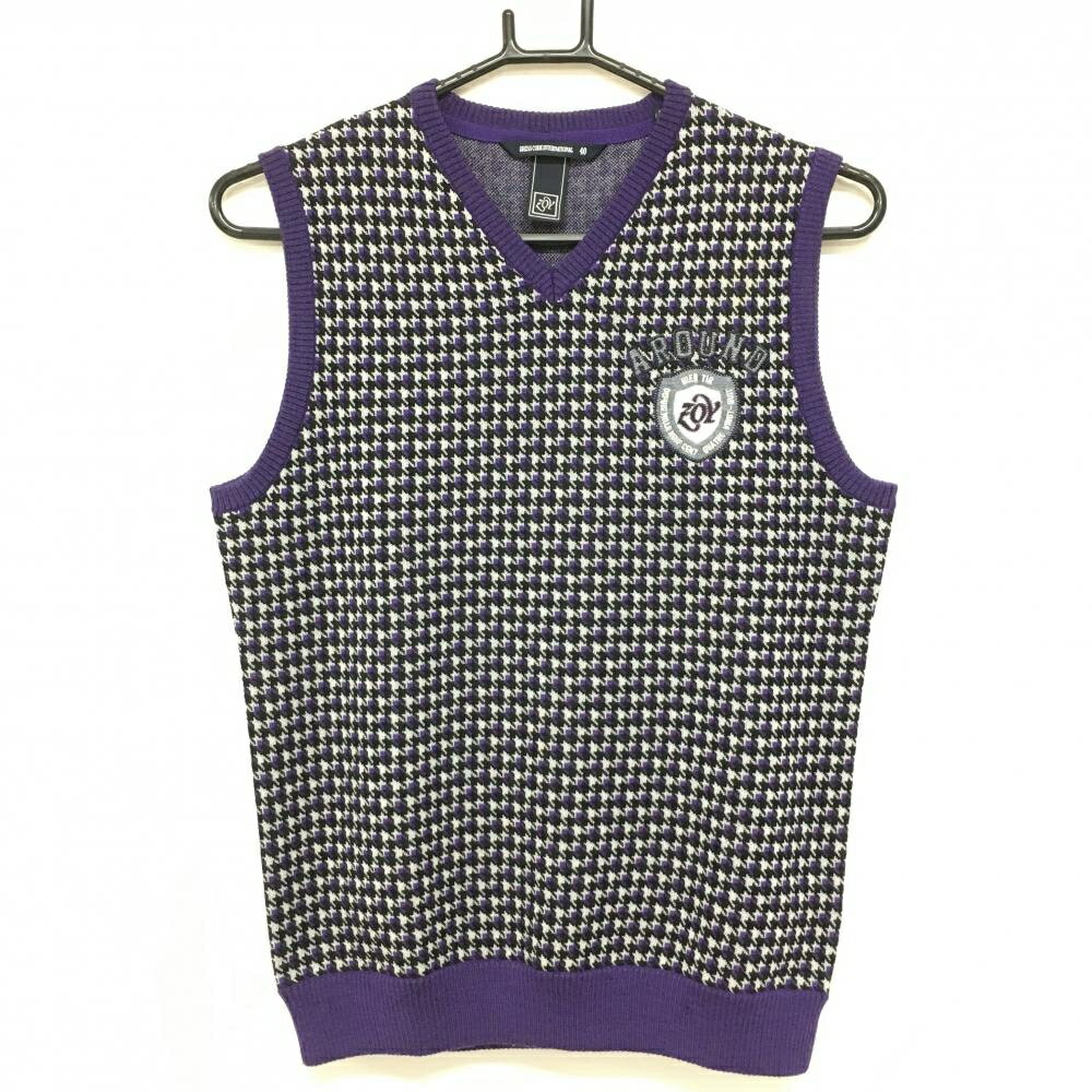 【超美品】ゾーイ ニットベスト パープル×黒 千鳥柄 胸元ロゴ 羊毛混 レディース 40(L) ゴルフウェア ZOY