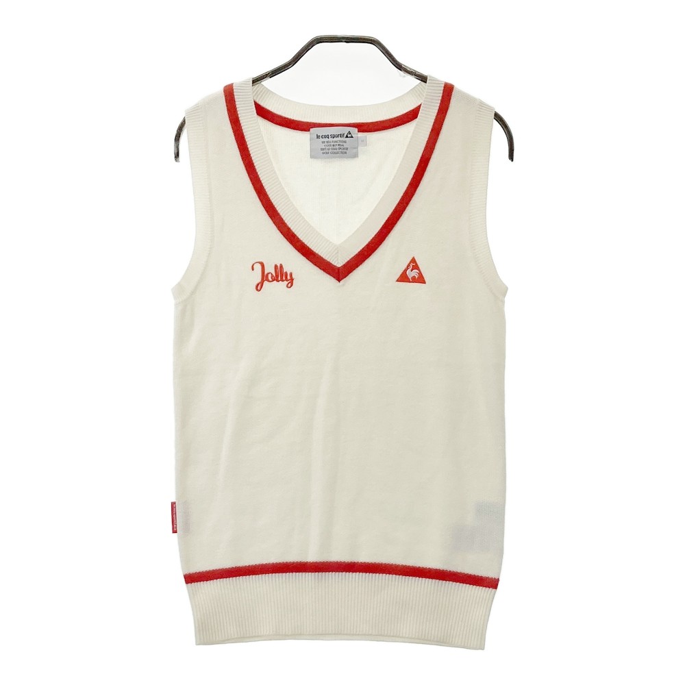 LECOQ GOLF ルコックゴルフ Vネック ニットベスト ロゴ刺繍 ホワイト系 M 【中古】ゴルフウェア レディース