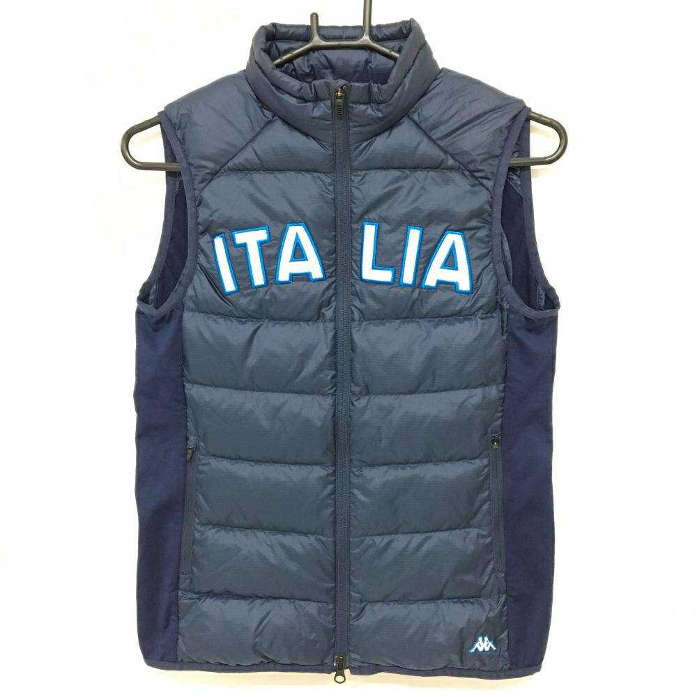 【美品】カッパ ダウンベスト ネイビー×白 フロントワッペン サイド切替 レディース M ゴルフウェア Kappa