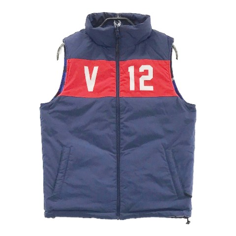 V12 ヴィトゥエルヴ リバーシブル 中綿 ジップベスト 迷彩 カモフラ柄 ネイビー系 S 【中古】ゴルフウェア レディース