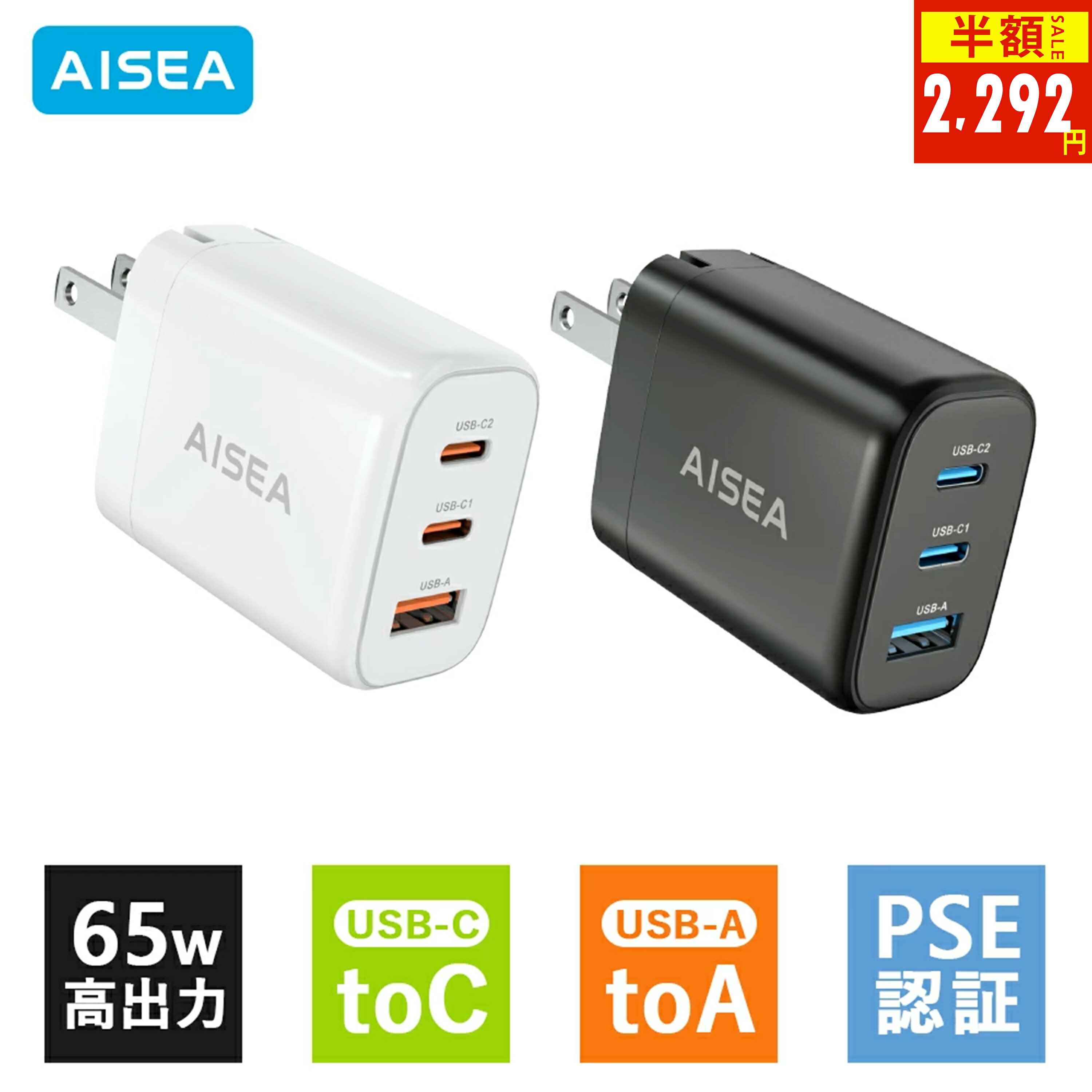 SANWASUPPLY サンワサプライ USB PD対応AC充電器(PD45W・TypeCケーブル付き) ACA-PD80BK