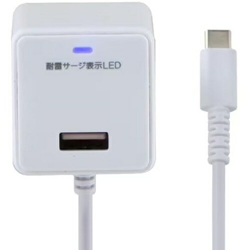 耐雷USB充電器 エルパ USB-Aポート付 PD20W 2m ホワイト 朝日電器 CHCR-SPA20WH