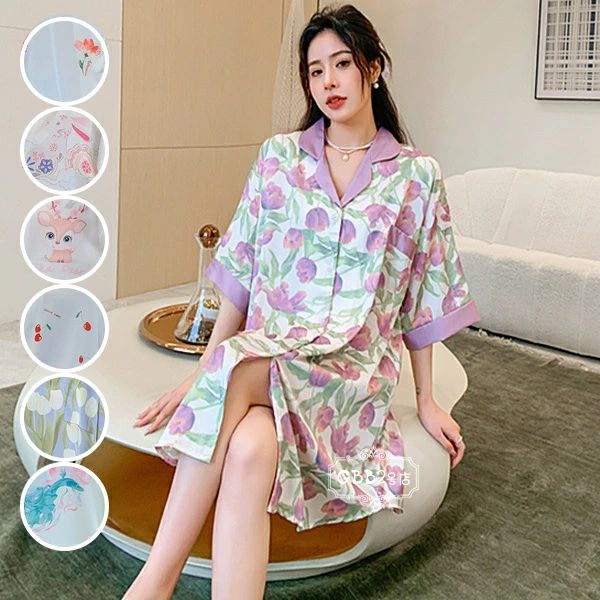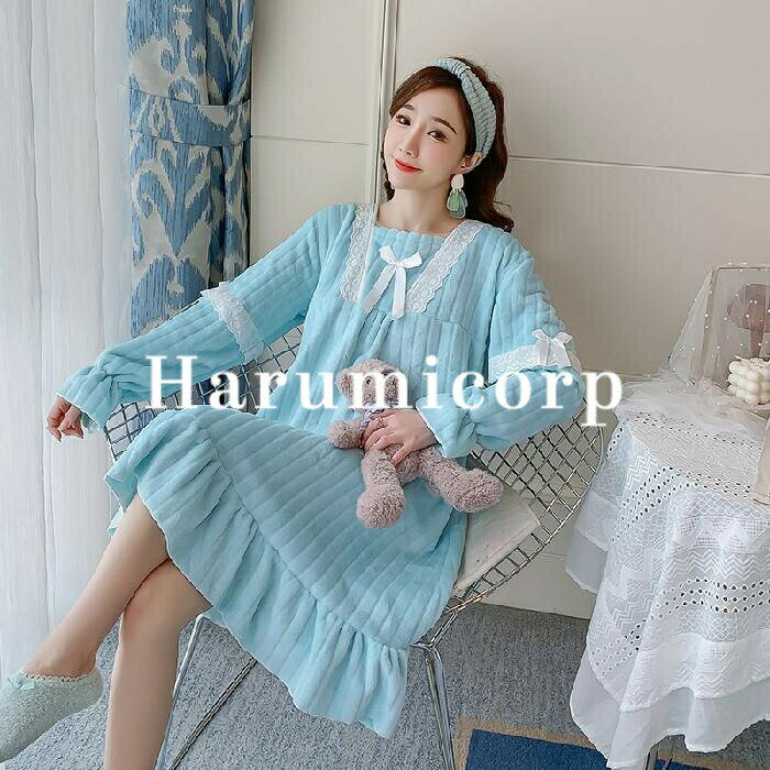 可愛いルームウェア ミモレ丈 ゆったり コットン 部屋着 ブルー 宮廷 綿 プリンセス風 ルームウェア ロング丈ネグリジェ 半袖ネ