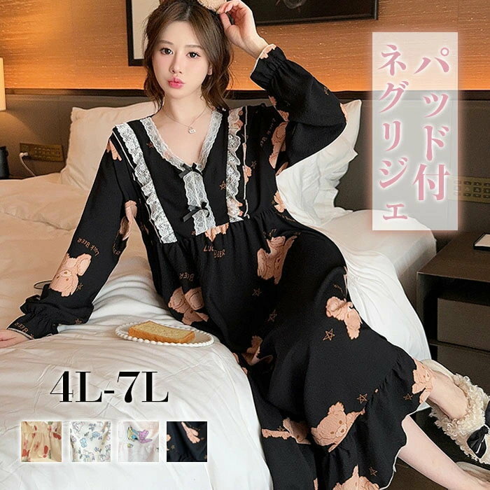 大人可 レディース パジャマ ロング丈ナイトロープ パッド付き レションレースネグリジェ キャミワンピース ネグリジェ 姫 春夏