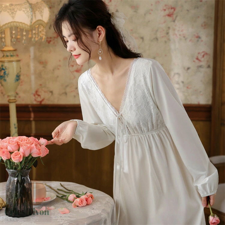 リヨセルシルク おしゃれ 大人可愛い ロング丈 長袖 ルームウェア 春秋用 レディース ネグリジェ