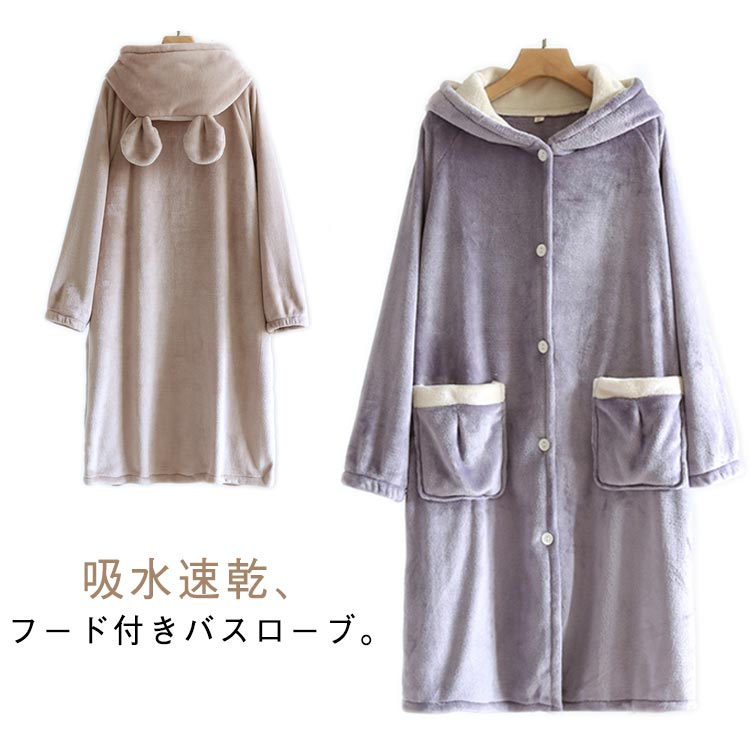 バスローブ レディース ガウン ナイトガウン ルームウェア マイクロファイバー タオル生地 タオル地 可愛い 速乾 秋冬 冬