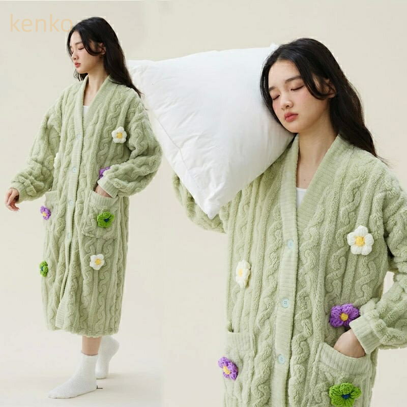 レディース もこもこ 厚手 ワンピース 冬 裏起毛 パジャマ 秋冬 ロング タオル地 ママ バスローブ単品 大きいサイズ 高級 ガウン
