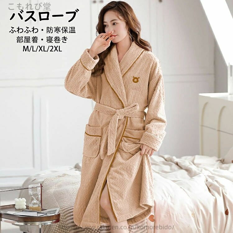 バスローブ レディース もこもこ 厚手 冬 裏起毛 カップル パジャマ 秋冬 ロング フランネル タオル地 ママ バスローブ単品 大き