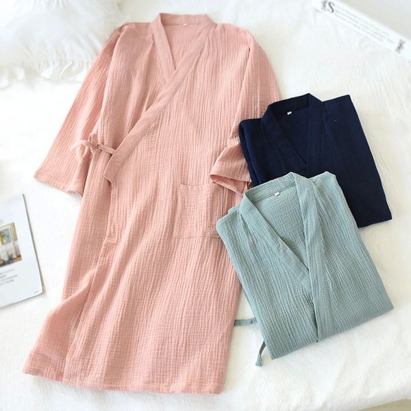ミディアムロングバスローブ ナイトガウン 温泉 風呂 速乾バスローブ メンズ レディース 薄手いバスローブ ガーゼコットン