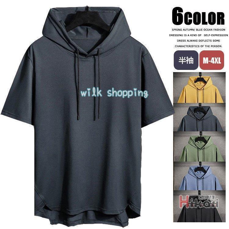 プルオーバーパーカー パーカー メンズ トップス 半袖パーカー 無地 フード付き 運動着 薄手 シンプル 父の日 プレゼント