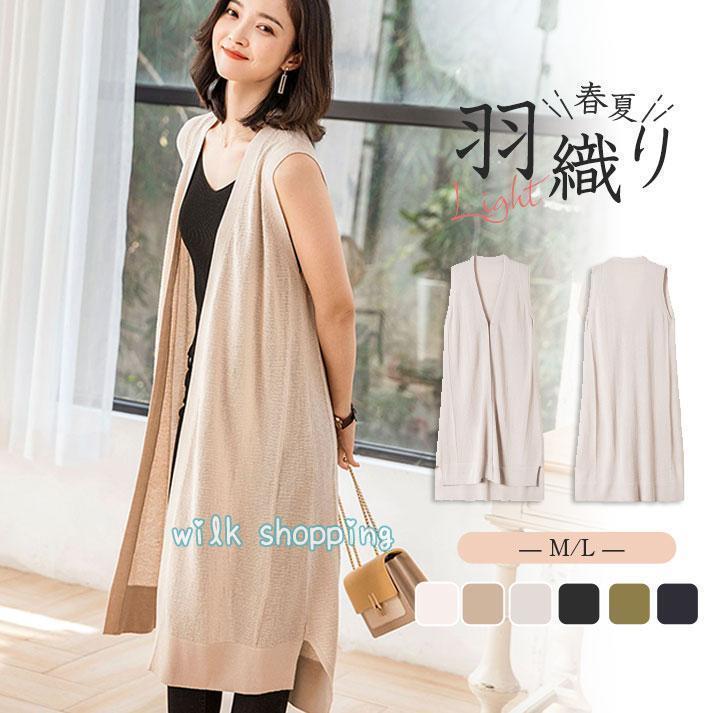 ジレ レディース ロングベスト ニットベスト リネン風 チョッキ 春夏 ノースリーブ 薄手 前開き ゆったり 体型カバー 涼しい 着回し