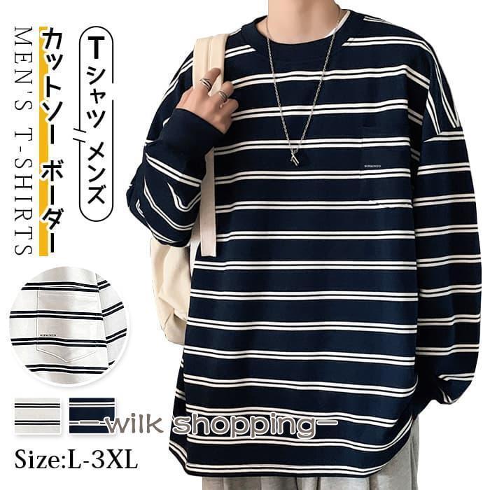 Tシャツ メンズ カットソー ボーダー ゆったり 大きいサイズ 長袖 トップス インナー おしゃれ 大人 カジュアル 通勤 通学