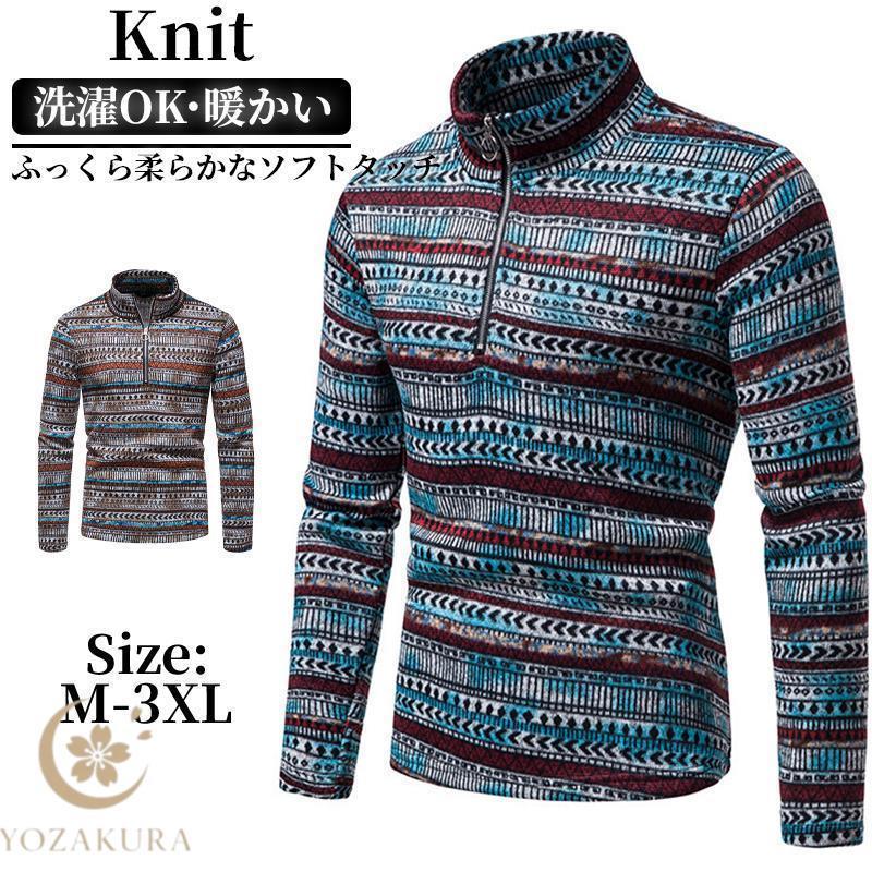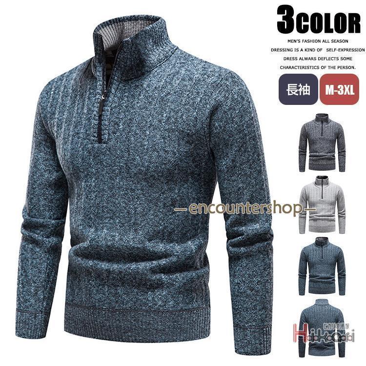 ゴルフウェア ニット メンズ ハーフジップ スタンド 長袖セーター 裏起毛 おしゃれ 30代 40代 50代 メンズスタイル