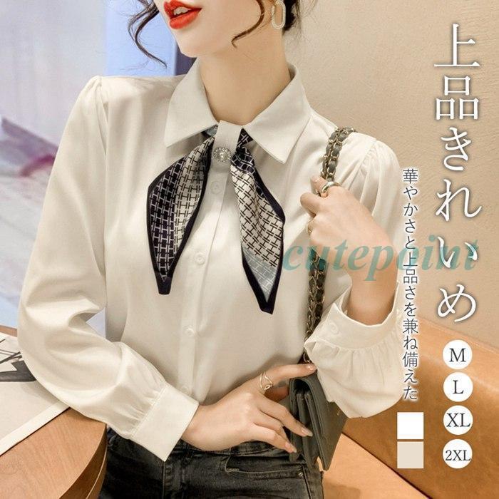 リボンボウタイブラウス レディース シャツブラウス ボウタイ シフォン ブラウス シャツ オフィス フォーマル きれいめ