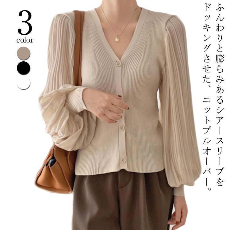 サマーニット トップス レディース ニット ゆったり 体型カバー 長袖 透かし編み