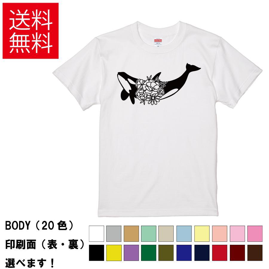 おもしろTシャツ フラワーオルカ 無地 メンズ レディース キッズ 半袖Tシャツ デザインTシャツ イラスト 花 シャチ 逆叉