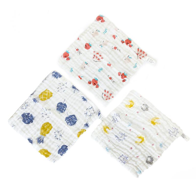 ベビー 全綿 ガーゼハンカチ 5枚組 A類 六重 高密度 プリント 新生児 柔らかい 洗顔タオル