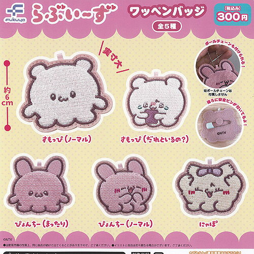 らぶいーず ワッペン バッジ 全5種+ディスプレイ台紙セット フクヤ ガチャポン ガチャガチャ ガシャポン コンプリート
