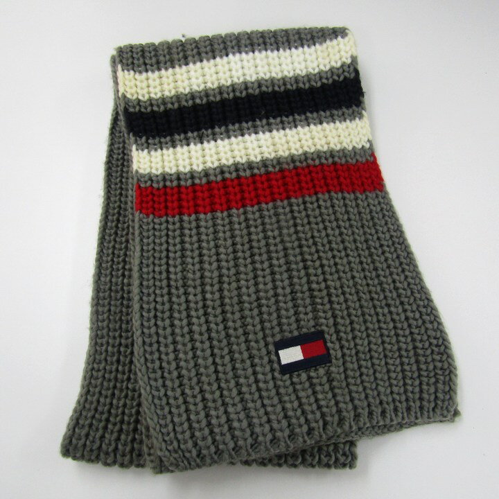 TOMMY HILFIGER トミーヒルフィガー マフラー ボーダー ロゴ ブランド メンズ レディース マルチカラー 【中古】