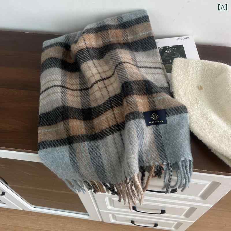白 青 茶色 ウール 混紡 チェック柄 フリンジ 延長 マフラー 女性 冬 英 倫 経典 保温 マフラー 男