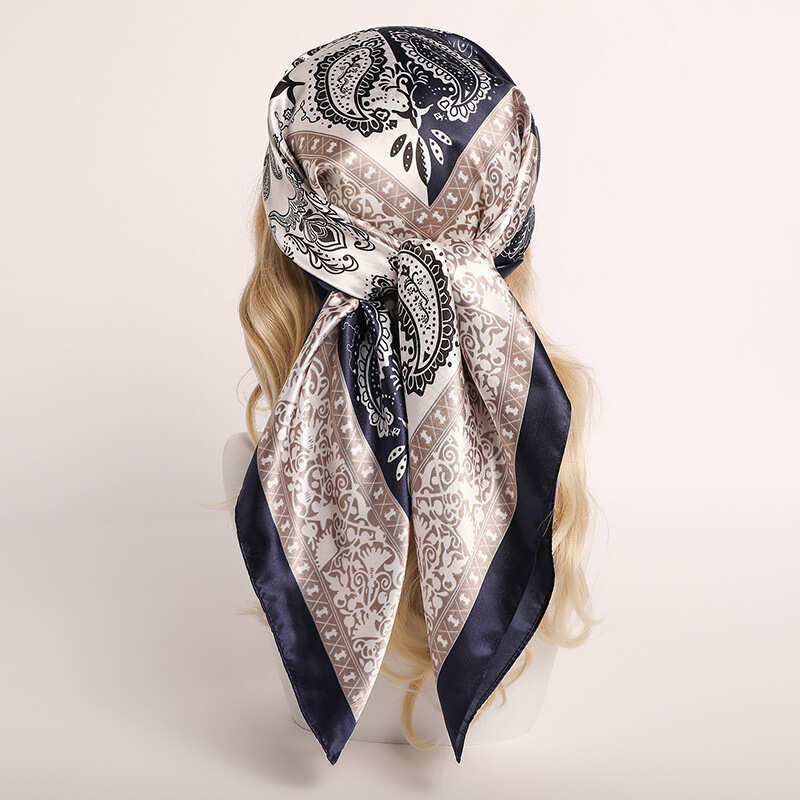 春夏新作 90cm 大判 スカーフ ツートンカラーの欧米風 レトロデザイン 薄手で多用途なヘッドスカーフ ショール
