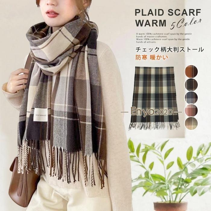 チェック柄大判ストール ストール マフラー ネックウォーマー レディース 大判マフラー ロングマフラー ファッション 小物 防寒 暖かい