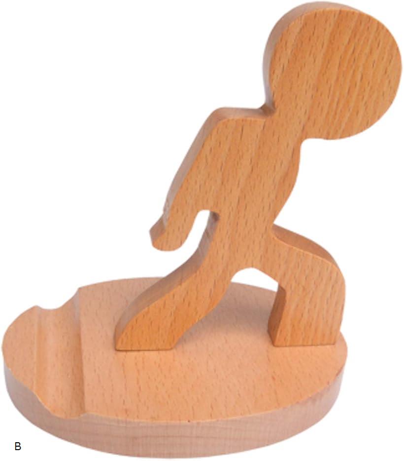 スマホスタンド ホルダー かわいい 人型 木製 携帯 電話 卓上 インテリア 充電 (B, 縦8.5cmx横9.5cmx奥行8cm)