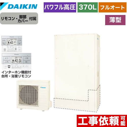 ダイキン [EQA37ZFV+スタイリッシュリモコン] エコキュート 角型 Aシリーズ 一般地仕様 フルオートタイプ パワフル高圧 370L ♪