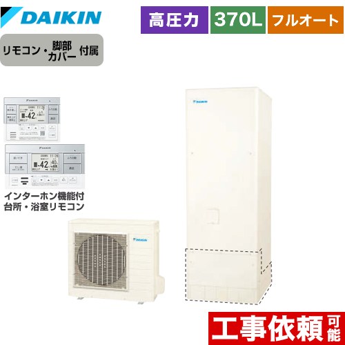 ダイキン [EQA37ZSV+スタイリッシュリモコン] エコキュート 角型 Aシリーズ 一般地仕様 オートタイプ パワフル高圧 370L ♪