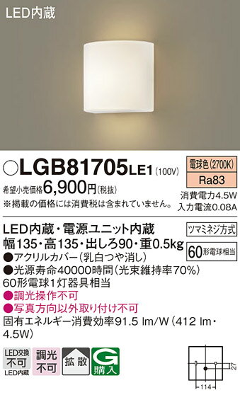 パナソニック ブラケット 直付タイプ 60形電球1灯器具相当 温白色 LED内蔵 LGB81701LE1