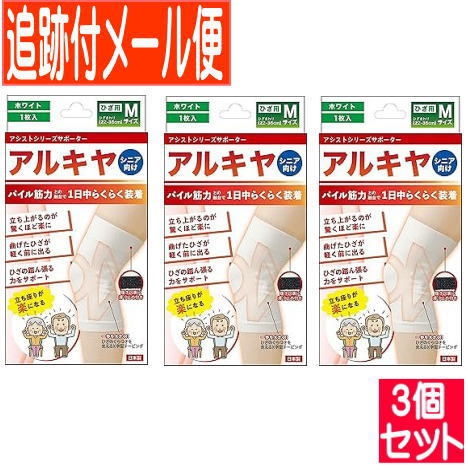 【3個セット】アルキヤシニアサポーター ヒザMサイズ ひざまわり22〜36cm 1枚入【メール便送料無料/3個セット】