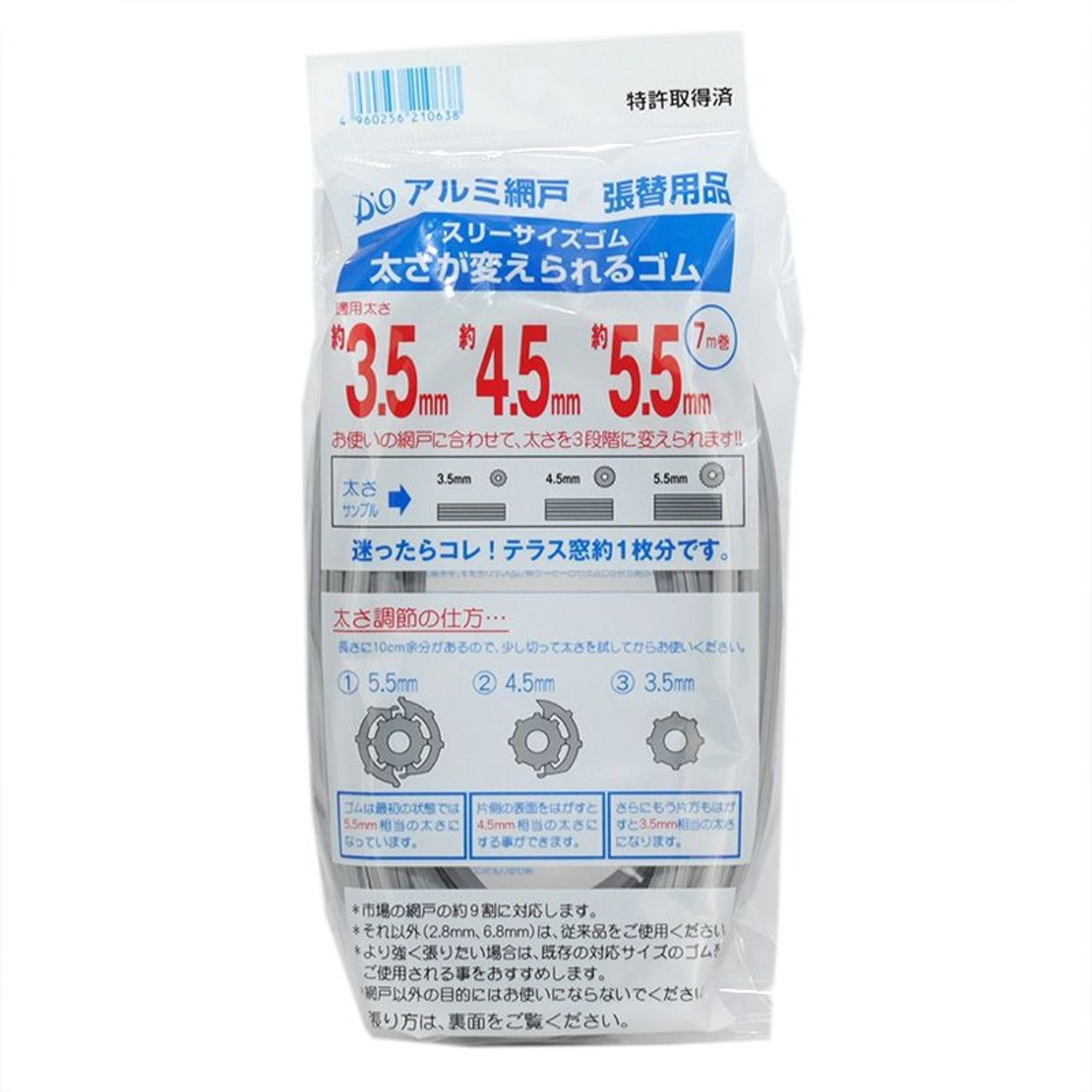 網戸用 網押さえゴム 太さが変えられるゴム