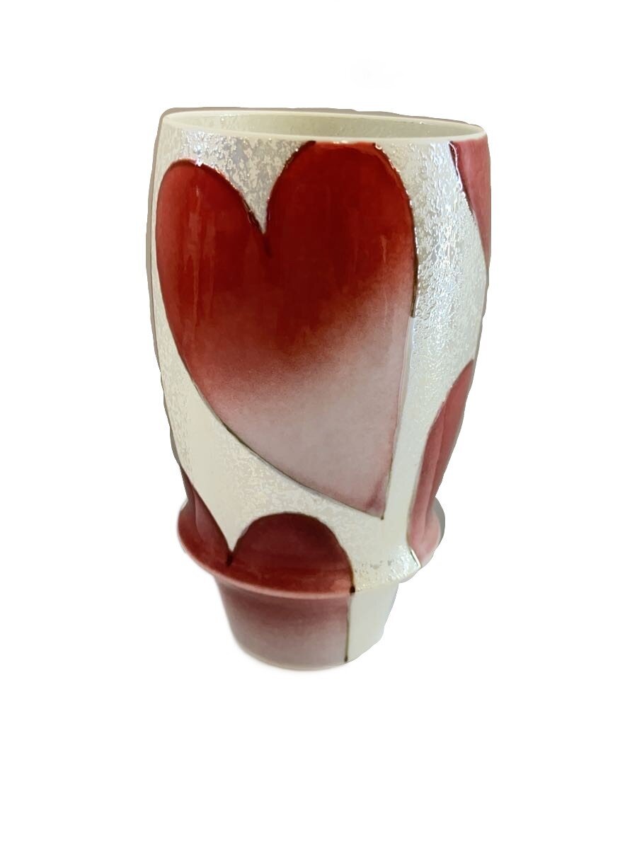 【中古】有田焼(田清窯)◆ビアグラス/白地/ハート柄【キッチン用品】