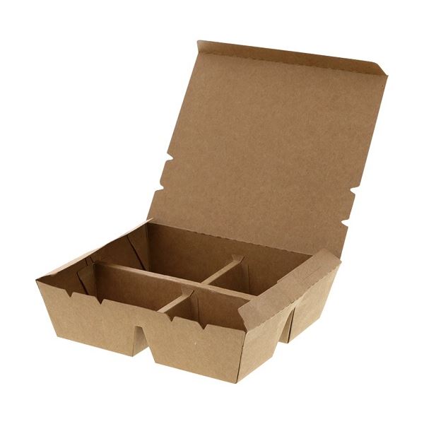 (まとめ) HEIKO 弁当容器 エコランチボックス 4仕切 #004409007 1パック(20枚) 【×3セット】