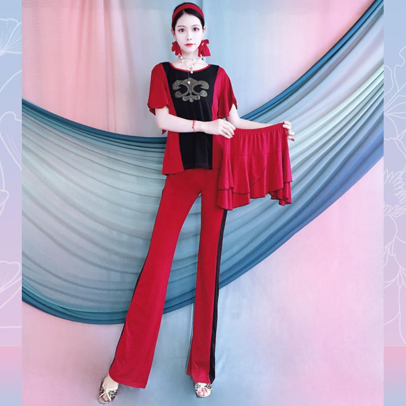 レディース ダンス スクエアダンス 服 スーツ 秋冬 バーガンディィ 服 パンツ スカート 3点セット