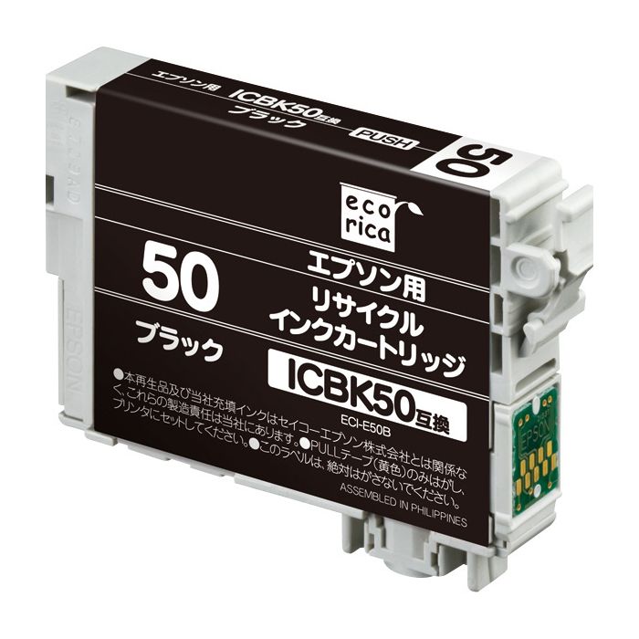 【代引不可】エプソン ICBK50 互換リサイクルインクカートリッジ ブラック EPSON エコリカ ECI-E50B