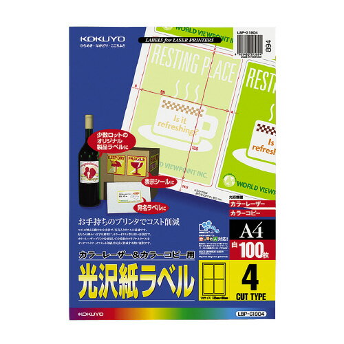 カラーLBP&コピー用光沢紙ラベル A4 100枚入 4面カット LBP-G1904【コクヨ】