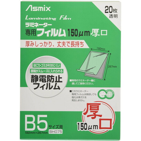 【送料無料】アスカ ASMIX ラミネートフィルム 厚口 150μ B5サイズ 20枚入 BH075 - メール便発送