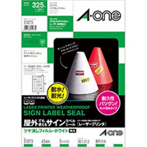 屋外でも使えるサインラベルシール(レーザープリンタ)ツヤ消しフィルム・ホワイト A4 65面角 5シート (代引不可)