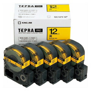 キングジム テプラ PROテープカートリッジ エコパック カラーラベル パステル 幅:12mm(黄テープ/黒文字)
