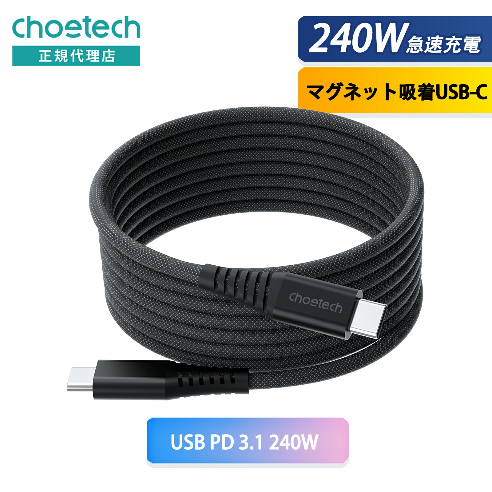 Miraitechマルチ充電ケーブル4-in-1USBCケーブル240WTypeC充電コード急速充電2m呼吸ライト付き