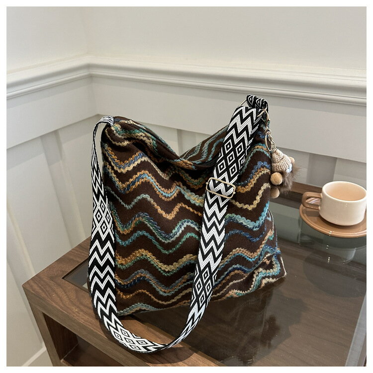 カラーストライプ編みバッグ ベルベットトートバッグ 大容量 シンプル ファッション ショルダーバッグ 通勤バッグ ショルダーバッグ